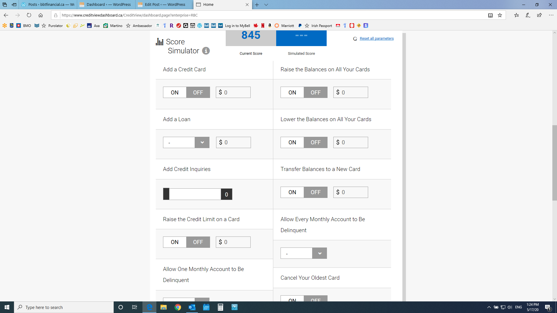 4. Current Credit Score and Credit Score simulator which reflects how your situation may change based on your plans.